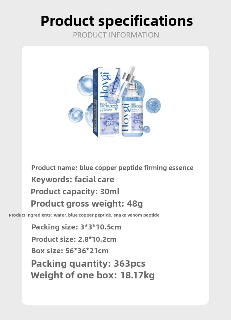 Blue Copper Peptide: Advanced formula for skin firming and rejuvenation.